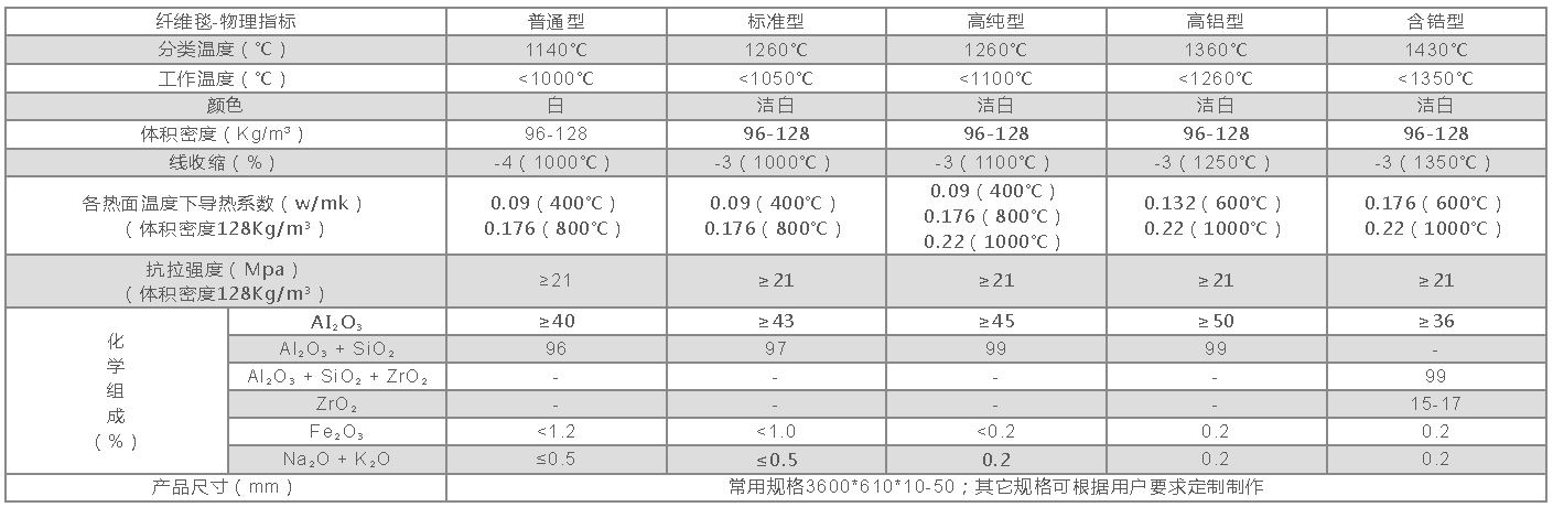 硅酸铝针刺毯分类温度: